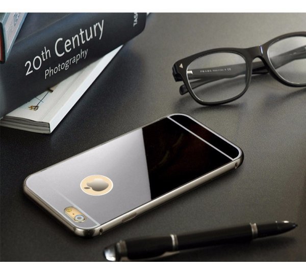 Zrkadlový kryt + bumper iPhone 6/6S - čierny
